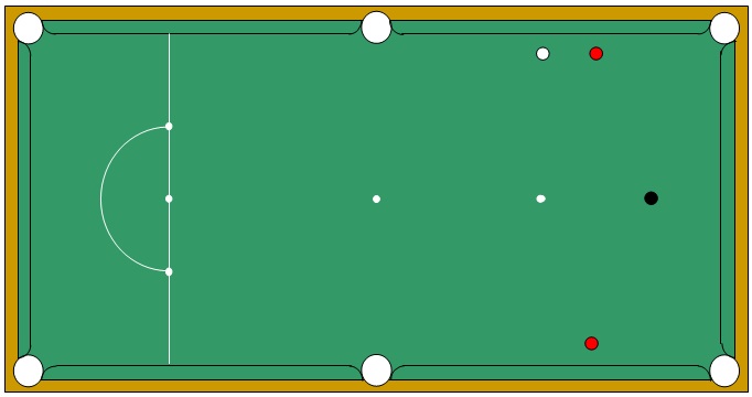 Spot the black and then position two reds between the pink and black spots and a ball’s width from each top side cushion as shown.