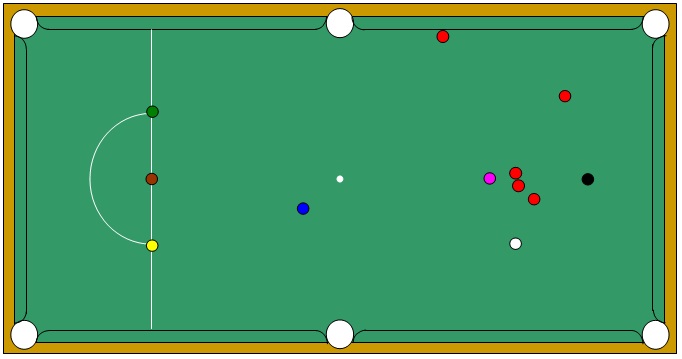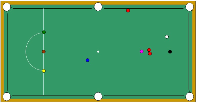The above illustration shows where the cue-ball could be placed to remove a problem ball straight away.