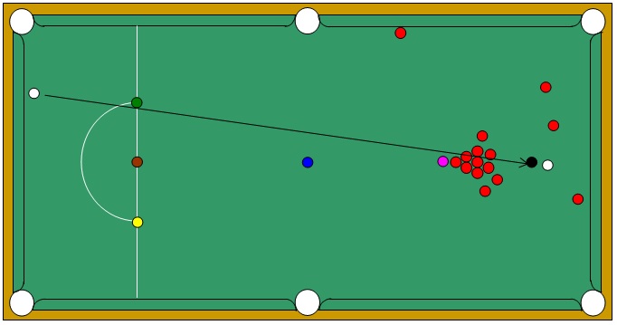 If there’s not a back-up red, aim to be lower on the black so a stun-run of the cue-ball can be made through the pack.