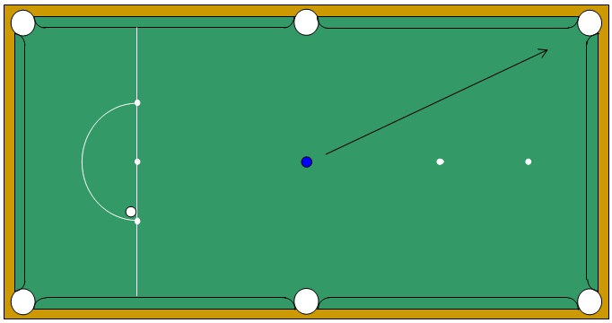 Playing from the D each time, have five goes at potting the blue into the one top pocket and five goes into the other top pocket.